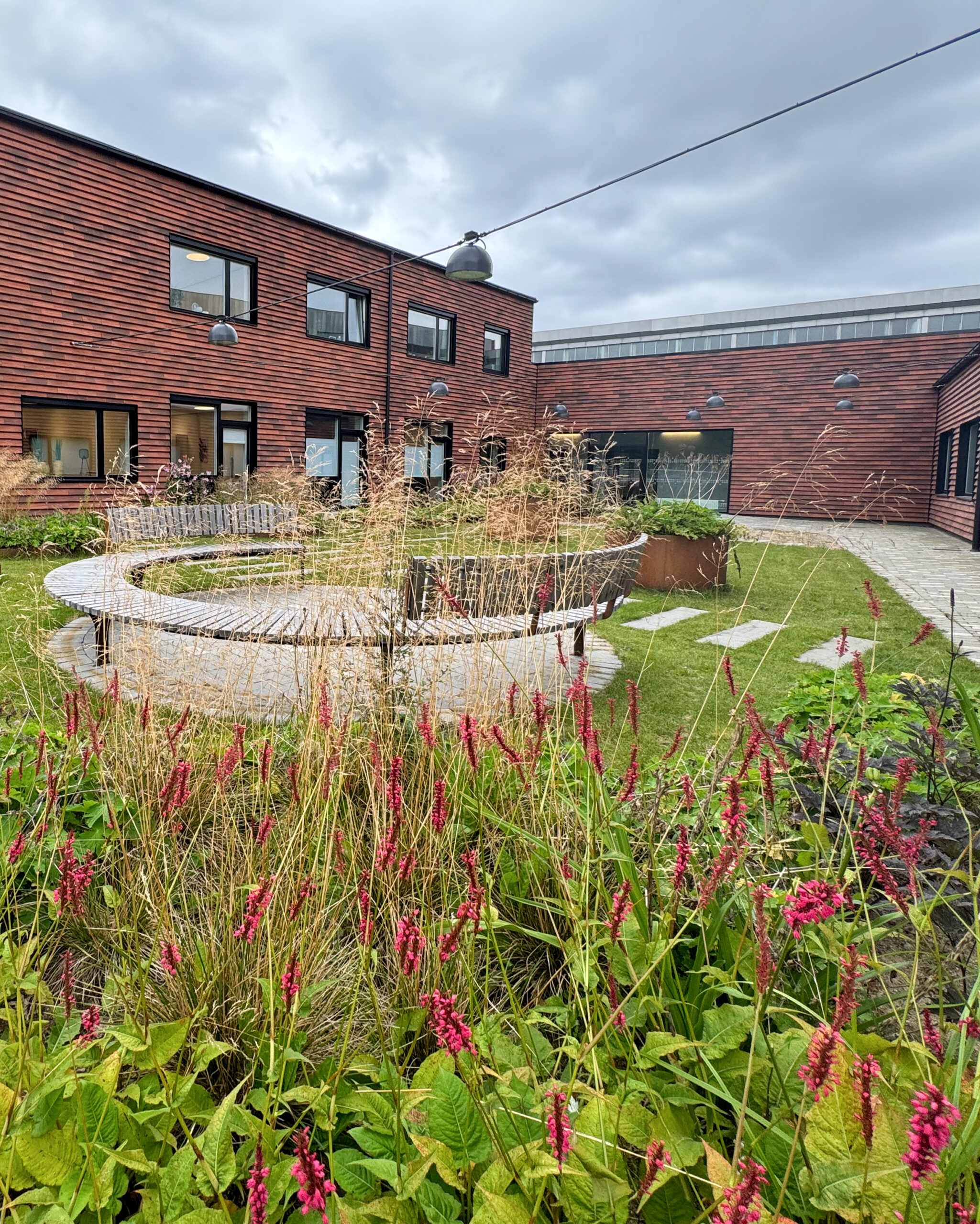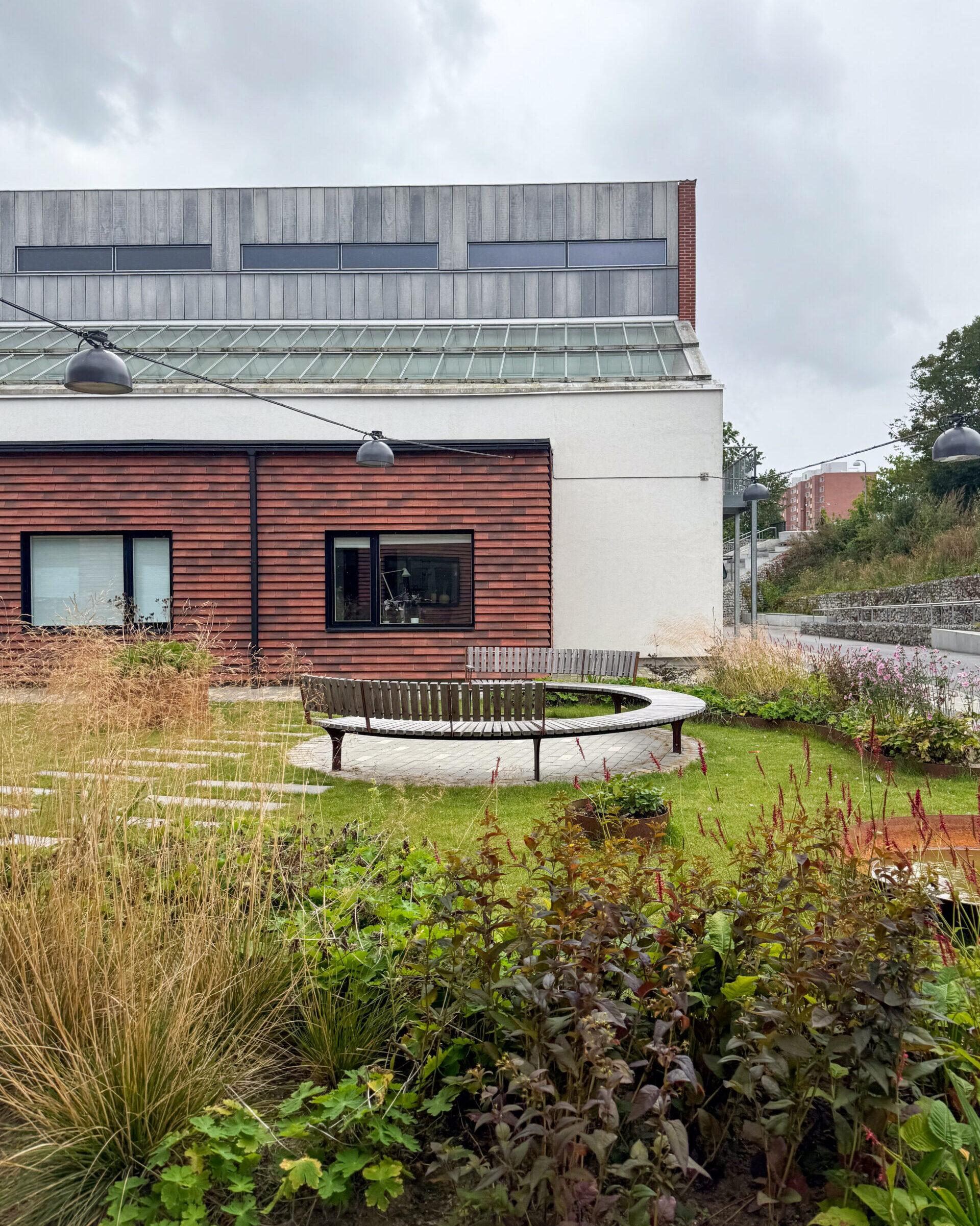 Transformationen er udført med stor omhu og fokus på at minimere klimaaftrykket. Vi har lavet livscyklus-analyser og arbejdet med principper om genbrug og nøjsomhed. Nedrevet beton er fx genanvendt i udendørsanlægget, og eksisterende materialer er i videst muligt omfang bevaret eller genbrugt.