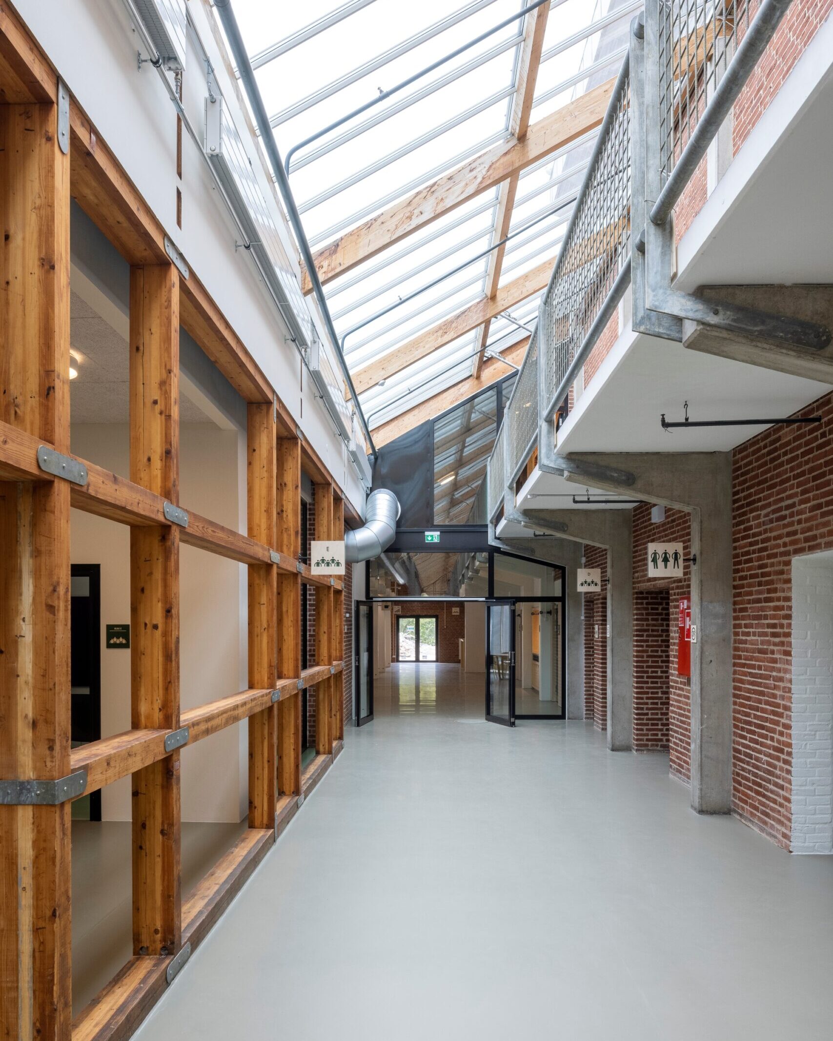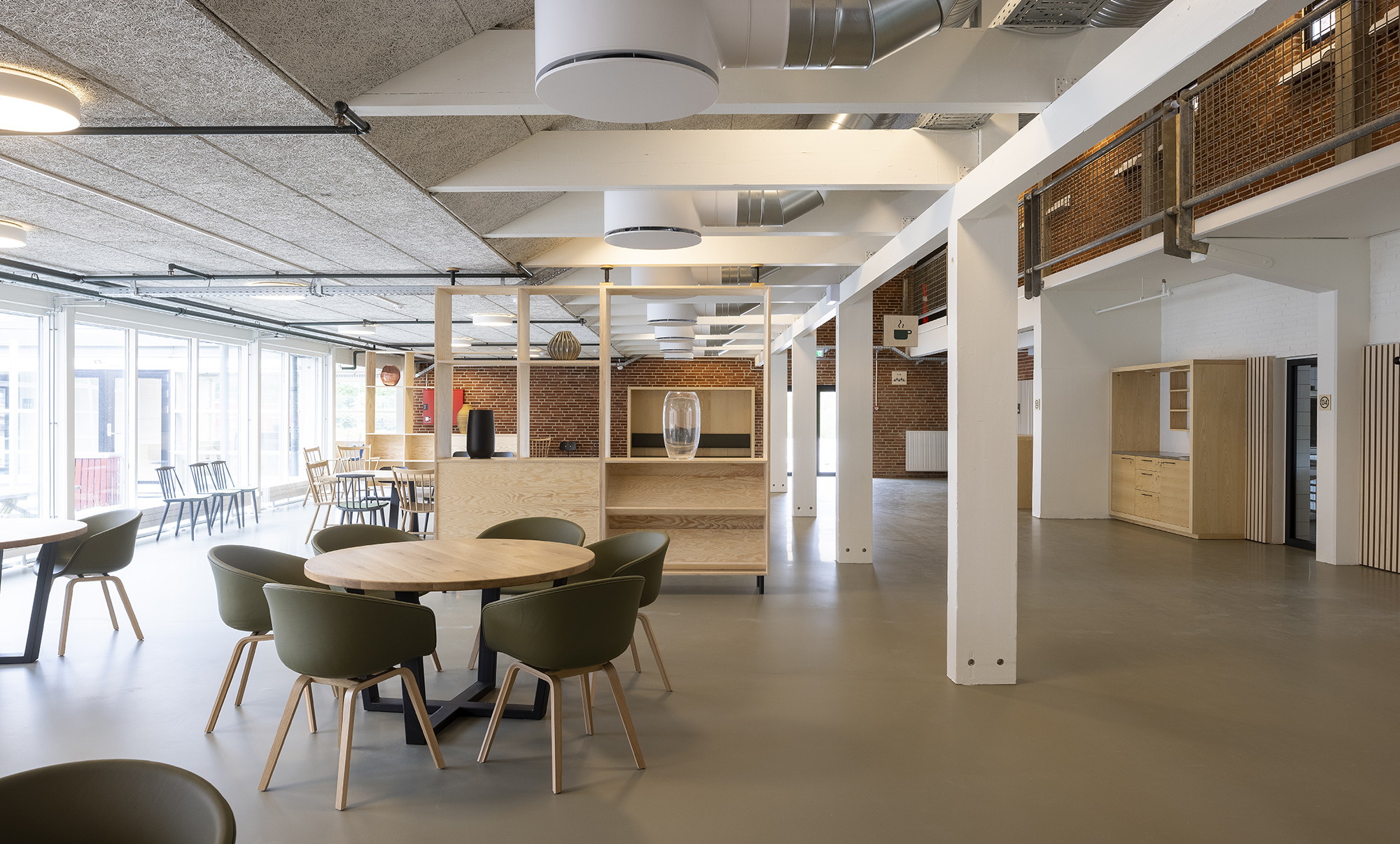 Brohuset er oprindeligt opført i 1987 og består af et 12.000 m² stort kompleks med kontorbyggeri og værkstedshaller. I transformationen har vi bevaret husets ærlige og rå karakter – synlige limtræsbjælker, beton og røde tegl – og tilføjet nye materialer og detaljer, der tilfører varme og menneskelig skala. Vi har åbnet op, skabt forbindelser på tværs og indrettet med fokus på uformelle mødesteder og materialer i høj kvalitet.