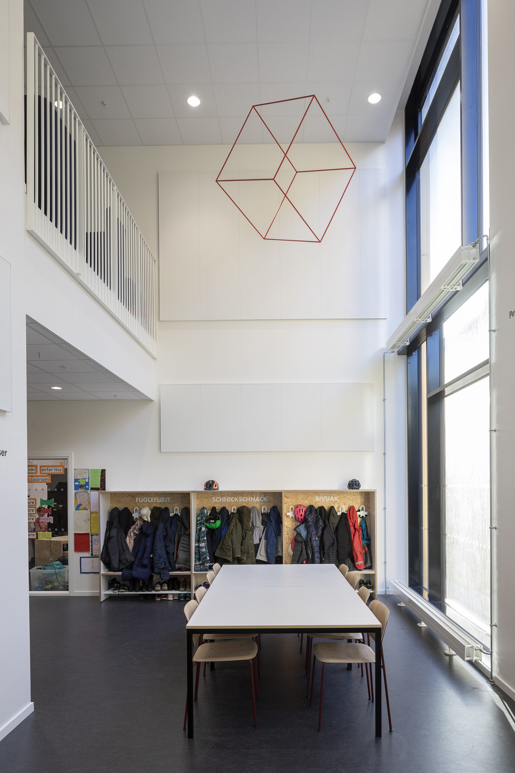 - klasserummene har skræddersyede samlingsmøbler efter alderstrin