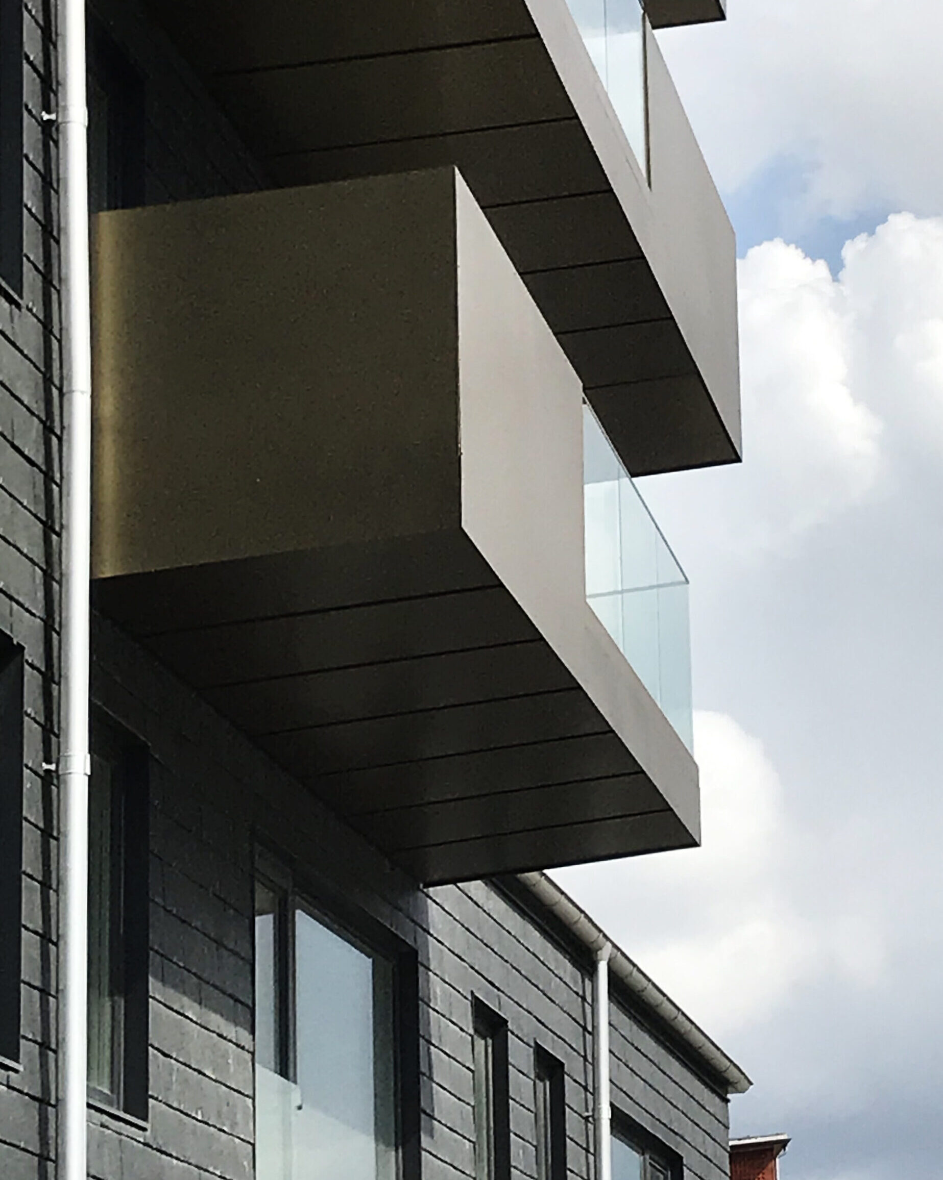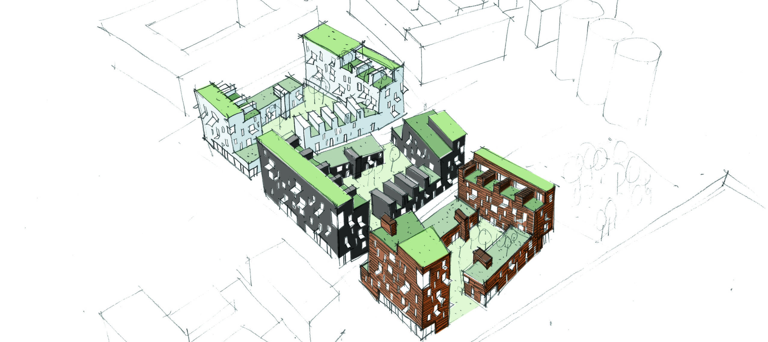 Bebyggelsen rummer både rækkehuse/byhuse og etageboliger i 2–10 etager. De tre karréer er opført i henholdsvis tegl, skiffer og puds, hvilket giver området et varieret og nutidigt udtryk. Alle boliger har enten åben eller lukket altan, egen forhave eller tagterrasse, og alle har adgang til grønne fælles gårdrum og terrasser. Et sammenhængende bånd af frugttræer binder gårdrummene sammen og skaber en fin variation gennem året.