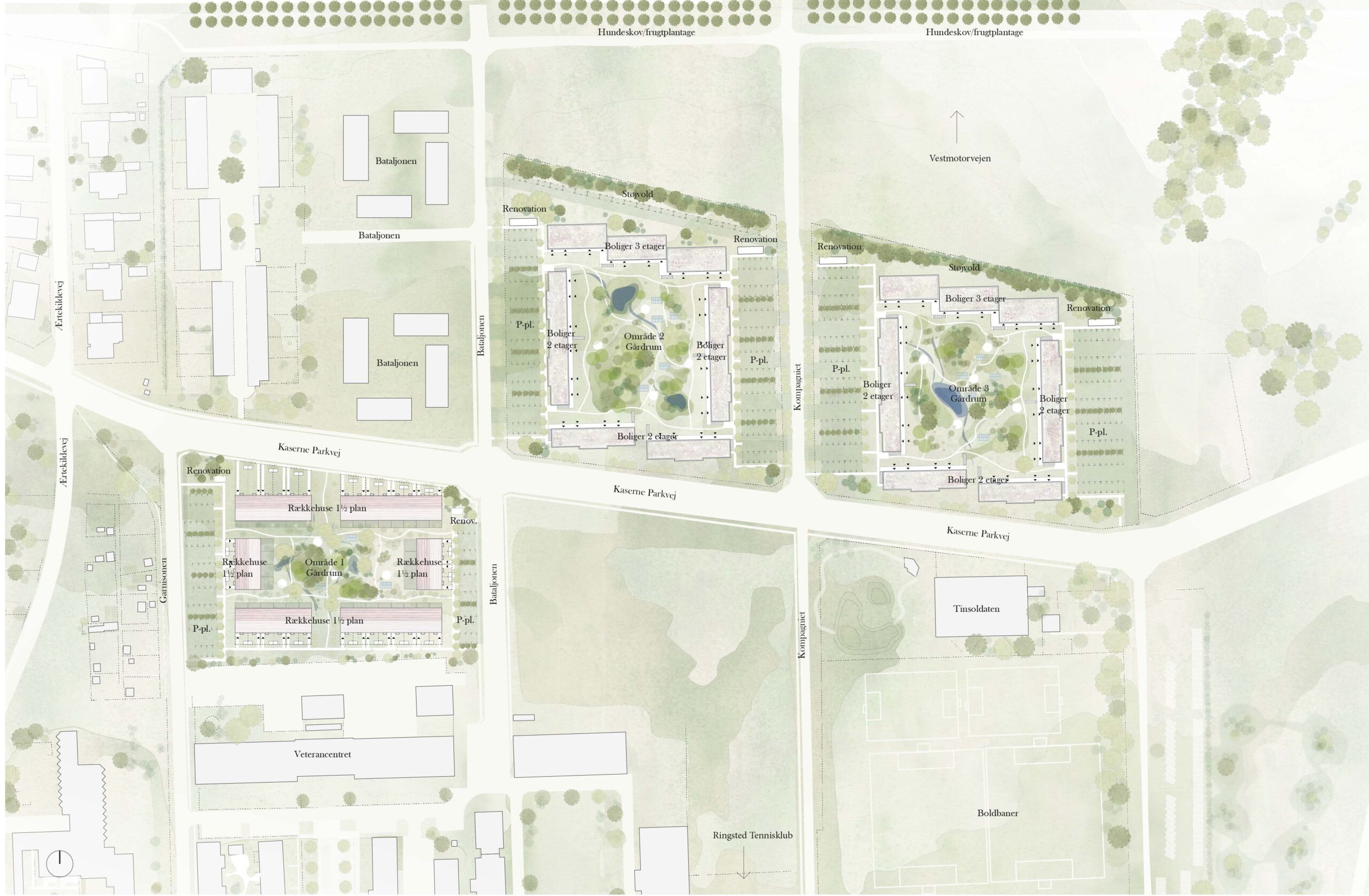JJW Arkitekter har i samarbejde med Svendborg Architects tegnet en boligbebyggelse, ideelt til alle, der gerne vil bo bynært i Ringsted. Bebyggelsen er tegnet med et grønt og luftigt præg, med generøse og sociale uderum, hvor der både er plads til privatliv og fællesskab.