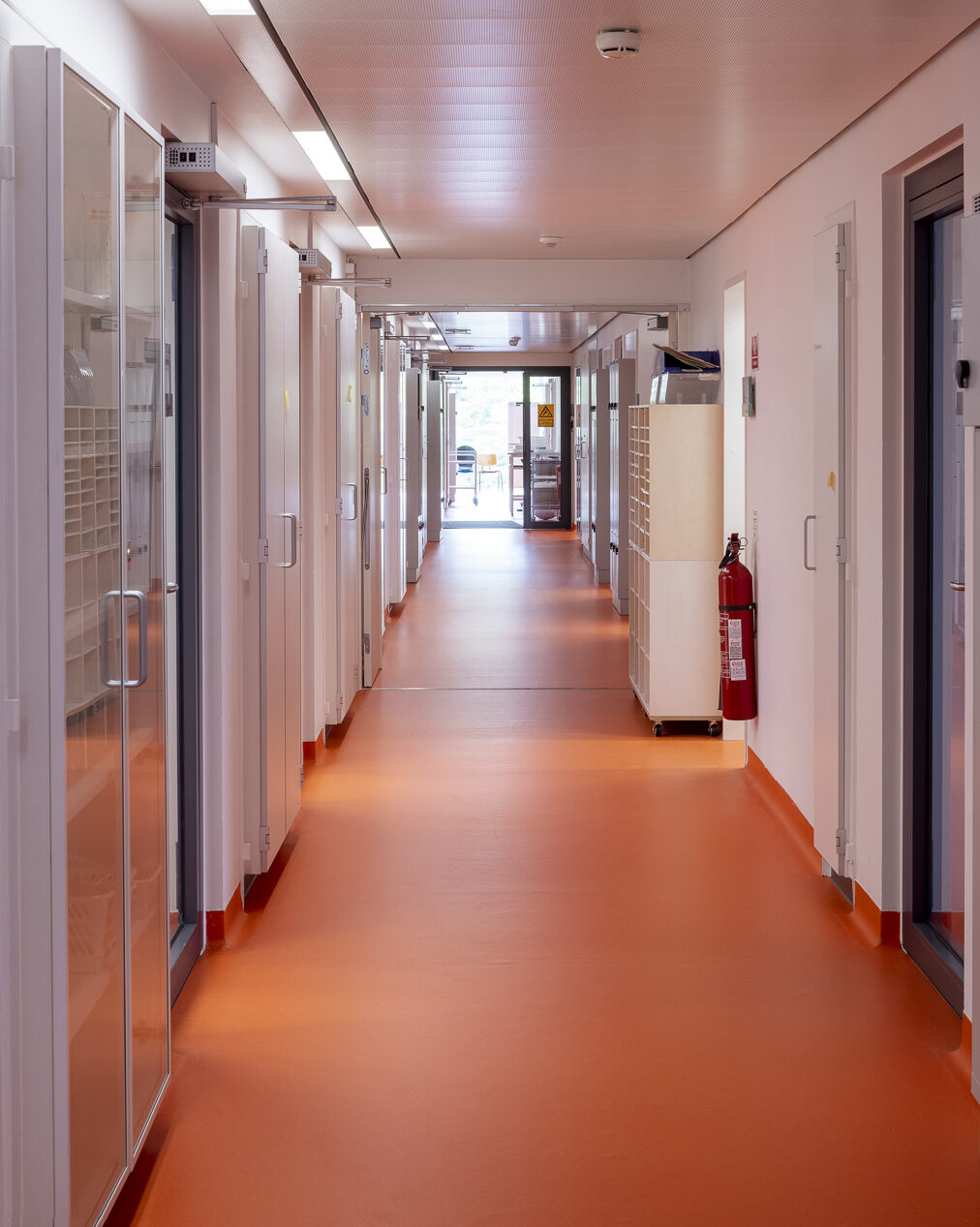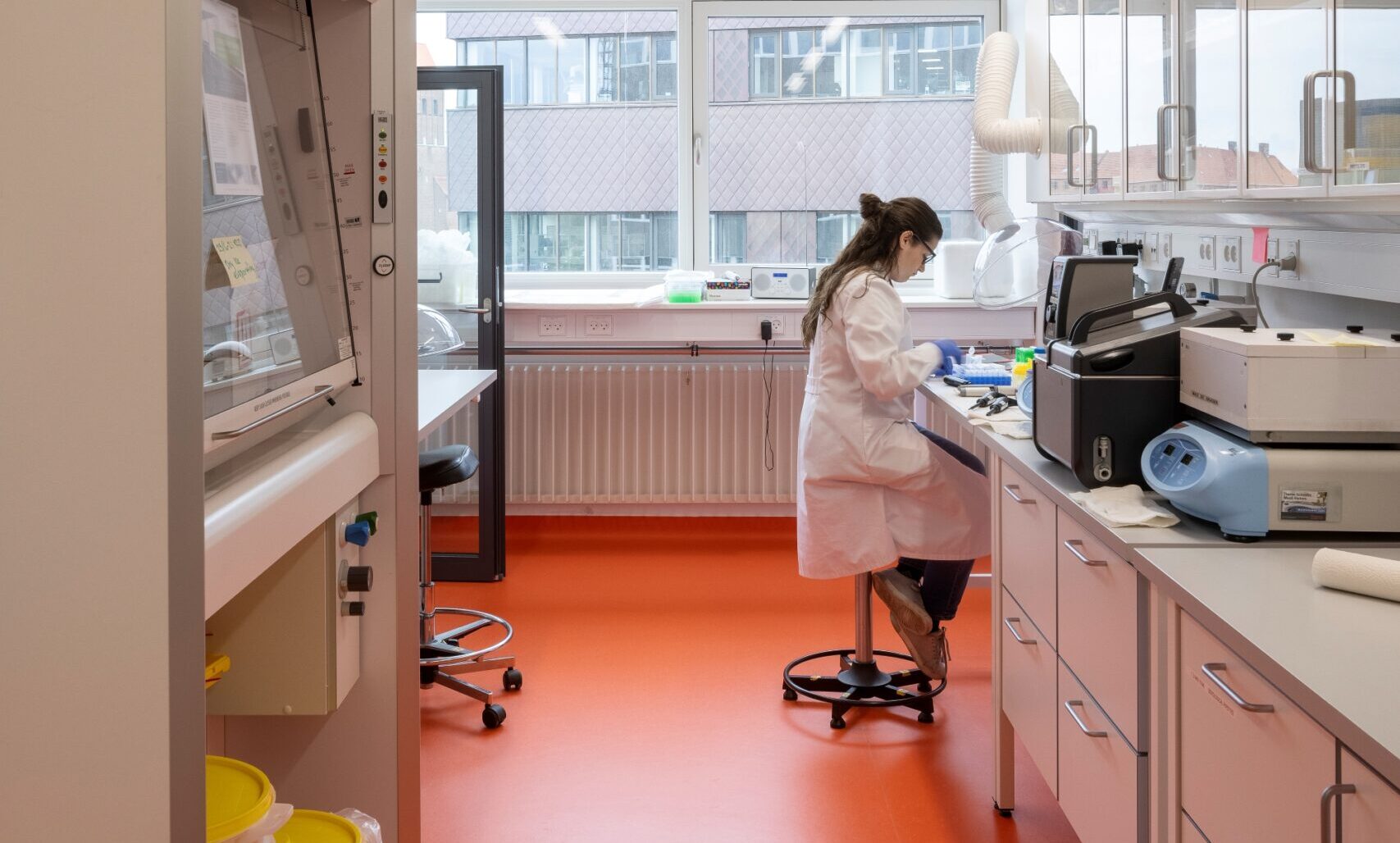 Transformationen handler ikke kun om funktionalitet, men også om ansvarlighed. Vi har skabt mere dagslys ved at udskifte døre til glasrammer, opgraderet fællesfaciliteter og valgt løsninger, der reducerer energiforbruget markant. Varmeanlægget er udskiftet til et effektivt to-strengssystem, og belysningen er erstattet med energibesparende armaturer. Laboratorierne er indrettet efter en standard, der gør dem anvendelige for fremtidige brugere – med lavere driftsomkostninger og minimal vedligeholdelse.