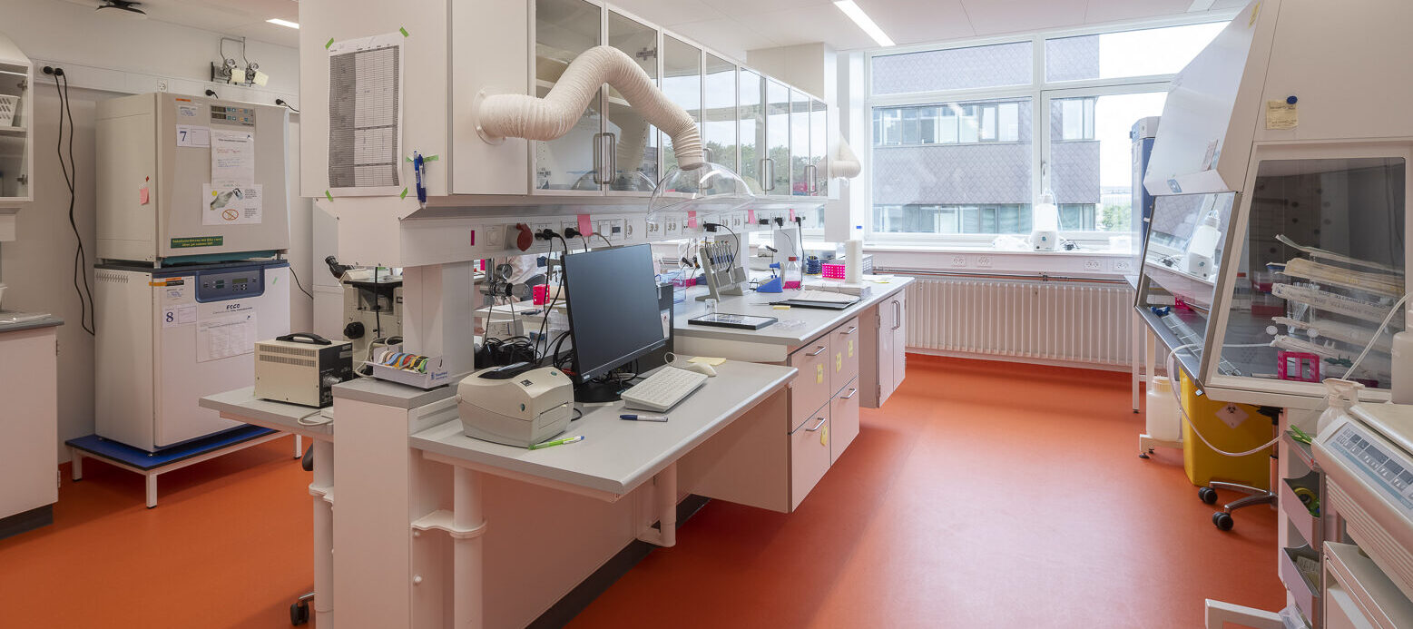 Renoveringen blev tilrettelagt med en klar ambition: at skabe rammer, der understøtter forskning og undervisning på den bedst mulige måde. Derfor blev brugerne inddraget fra start, og etaperne planlagt, så hverdagen kunne fungere undervejs. Vi har disponeret funktionerne ens på alle etager for at skabe et intuitivt flow og minimere installationsomkostninger. Samtidig har vi indrettet uformelle mødesteder og touchdown-arbejdspladser, der styrker samarbejde og videndeling – både i laboratorierne og i gangarealerne.