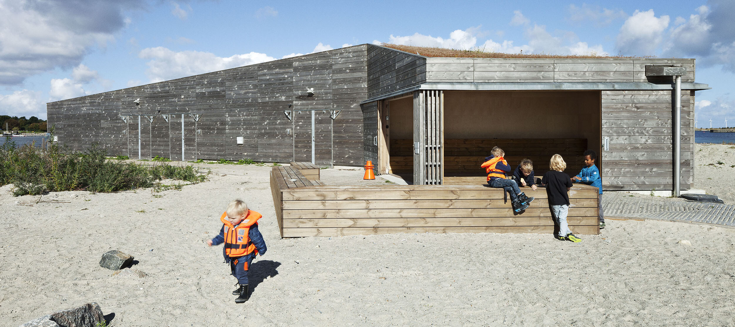 Naturcenteret, et sted for leg, læring og oplevelser i naturen. Klubhuset, et samlingspunkt for foreninger med aktiviteter til lands og til vands og Strandhuset til opbevaring af grej, udstyr og mindre både til foreninger og formidlingsaktiviteter.