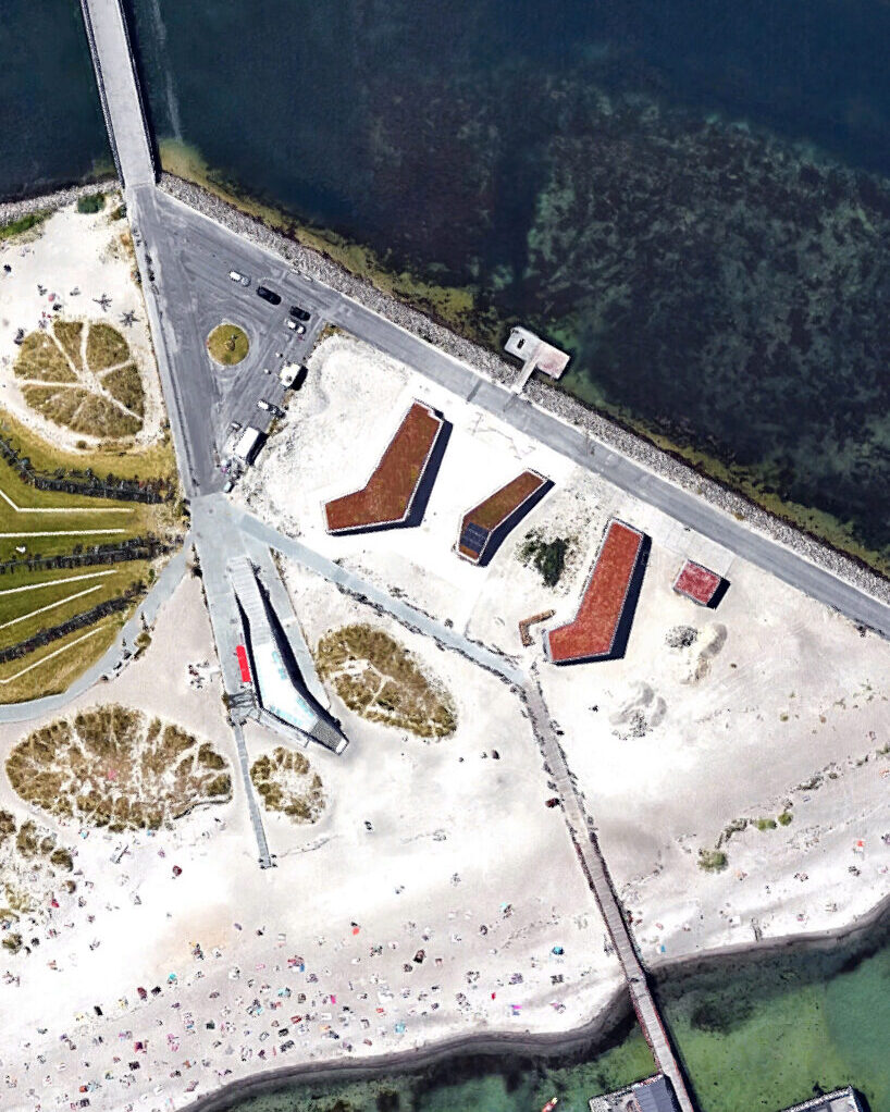 Bygningernes form er inspireret af vind, lys og klitlandskabets organiske rytme. De knækkede bygningskroppe åbner sig mod stranden og skaber læ og ophold, mens grønne tage smelter sammen med landskabet.