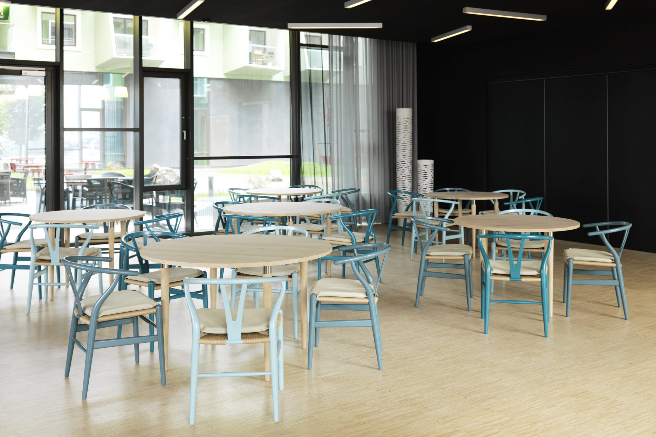 Plejecentret er samtidig tænkt som en god og velfungerende arbejdsplads for mange faggrupper. Indretning, materialevalg, lys- og lydforhold samt plads til hjælpemidler og velfærdsteknologi understøtter sikre arbejdsgange og høj arbejdsglæde.