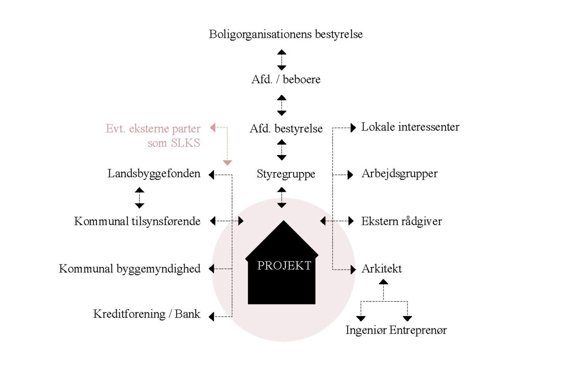 Diagram over parter i et alment renoveringsprojekt. Efter Martens Gudmand-Høyer, 2018.